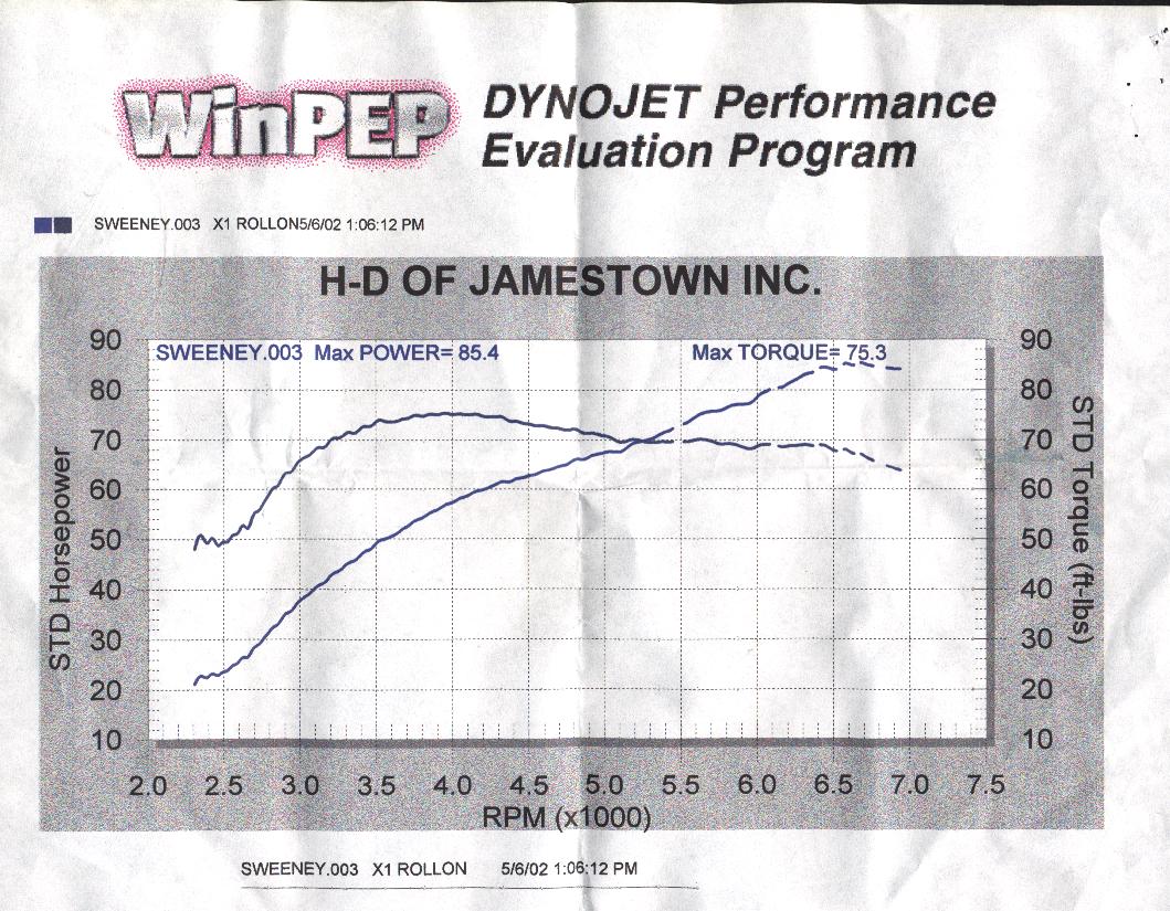 I didn't get a dyno run of the stock bike but here it is with the following mods